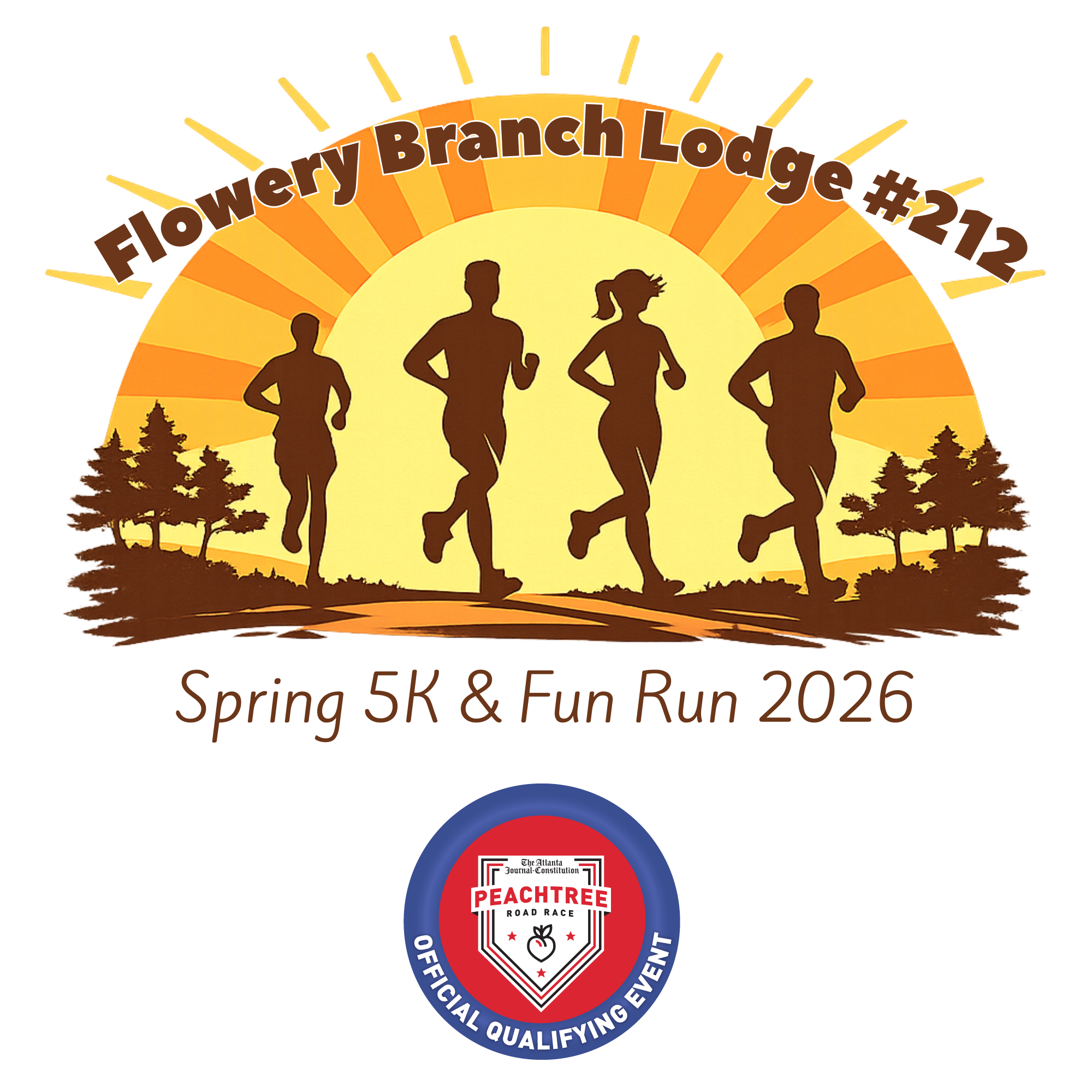 Welcome Runners! Come join us for another Fun Day on the streets of the constantly changing landscape of the City of Flowery Branch on May16th at 9am. We are excited to announce that we are an official qualifier for the “Atlanta Journal-Constitution Peachtree Road Race” and your results will be available on the Atlanta Track Club’s web page.